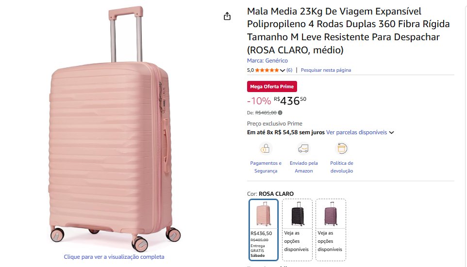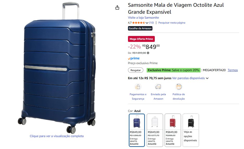 - Mala de Viagem Expansível | 10% de desconto – total R$ 436,50 – compre aqui