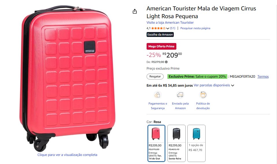Para quem está precisando de alguma mala, essa pode ser uma ótima oportunidade de adquirir os itens com desconto! Lembre-se de comparar os preços com outras varejistas e também a possibilidade de ganhar cashback ou acumular pontos na sua compra.