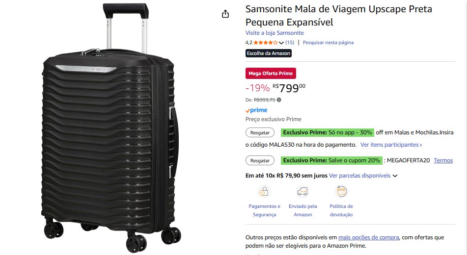 - Mala de Viagem Samsonite Upscape | 19% de desconto – total R$ 799,00 – compre aqui