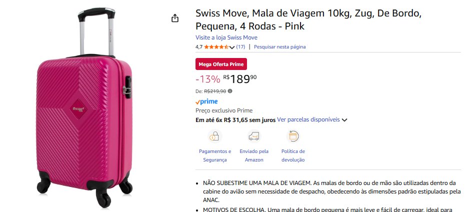 - Mala de Viagem Swiss Move |13% de desconto – total R$ 189,90 – compre aqui