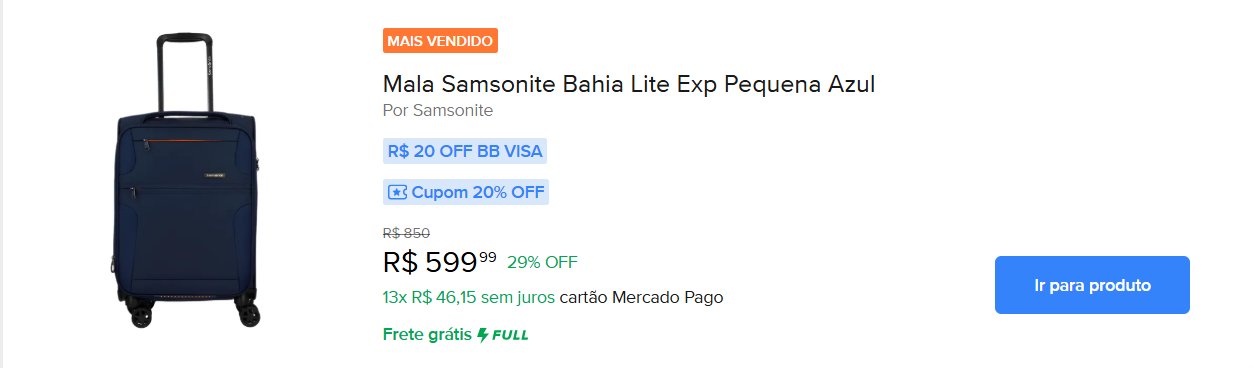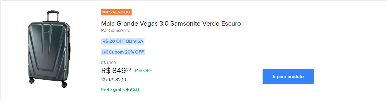 Essa pode ser uma boa oportunidade para fazer a compra de alguma mala Samsonite que você gostaria por um custo reduzido. Atente-se que os descontos são válidos por tempo indeterminado e pode acabar a qualquer momento.