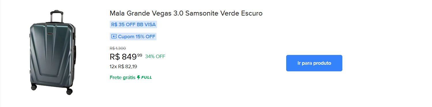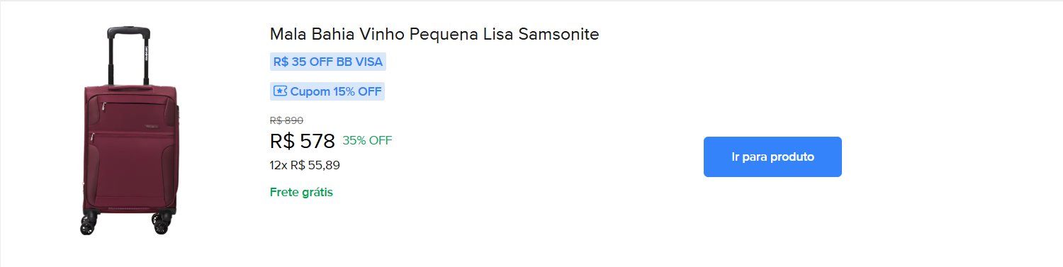 Essa pode ser uma boa oportunidade para fazer a compra de alguma mala Samsonite que você gostaria por um custo reduzido. Atente-se que os descontos são válidos por tempo indeterminado e pode acabar a qualquer momento.