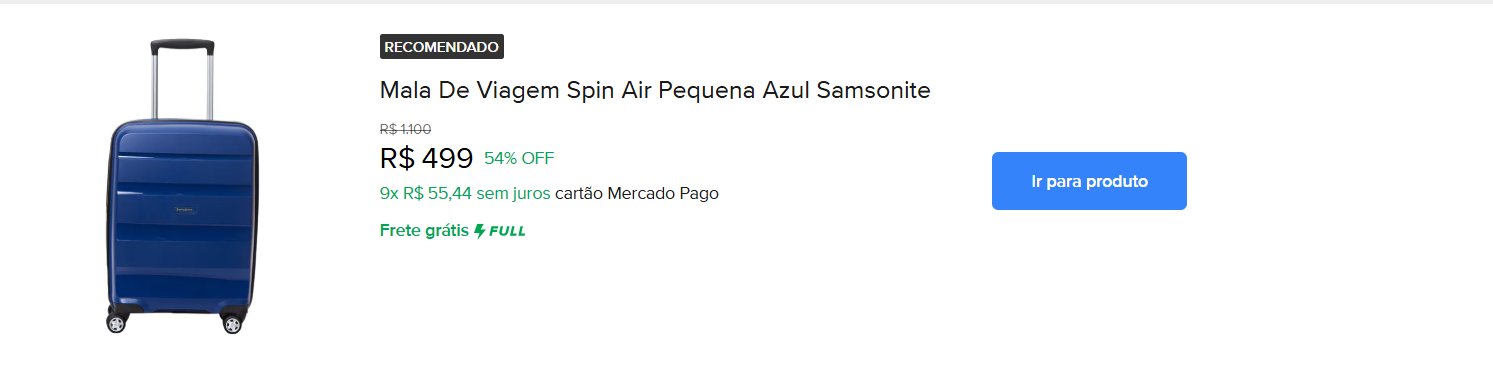 Procurando malas para a sua próxima viagem? O Mercado Livre está com uma seleção de malas Samsonite com até 54% de desconto! Os descontos são ofertas relâmpagos, então acelere para comprar a sua porque os produtos podem se esgotar a qualquer momento. Confira!