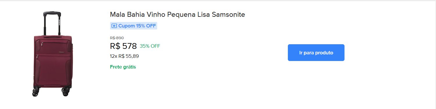 Essa pode ser uma boa oportunidade para fazer a compra de alguma mala Samsonite que você gostaria por um custo reduzido. Atente-se que os descontos são válidos por tempo indeterminado e pode acabar a qualquer momento.