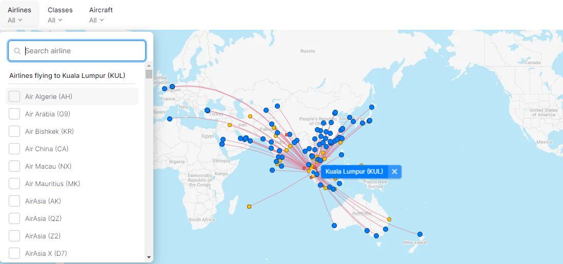 Como visto na matéria, nenhuma companhia oferece voos diretos para a Malásia partindo do Brasil. No entanto, várias companhias aéreas oferecem voos diretos para a Malásia a partir de grandes “hubs” de conexão em outras partes do mundo. Alguns exemplos incluem a Malaysia Airlines, além das companhias japonesas Japan Airlines (JAL) e All Nippon Airways (ANA), Cathay Pacific, Emirates, Ethiopian Airlines, KLM, Singapore Airlines, Qatar, entre outras. Essas companhias oferecem rotas diretas de várias cidades ao redor do mundo para destinos na Malásia, como Kuala Lumpur e Penang.