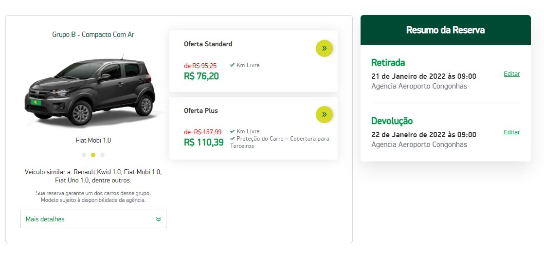 - Válido para reservas até o dia 31/01/22 com retiradas até o dia 31/01/2022