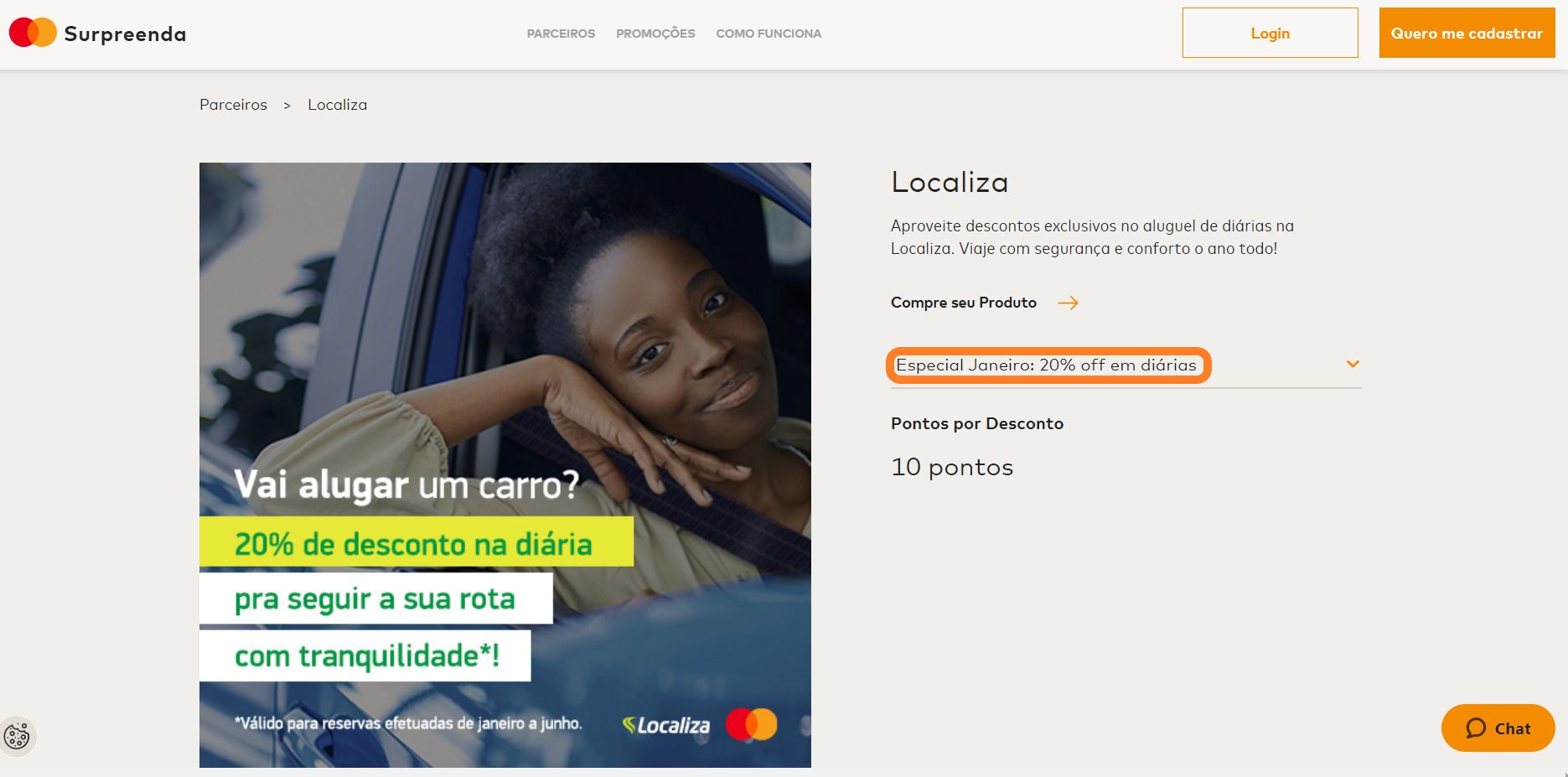 O programa Mastercard Surpreenda está oferecendo 20% de desconto em diárias de automóveis na Localiza. A oferta é válida somente no mês de janeiro.