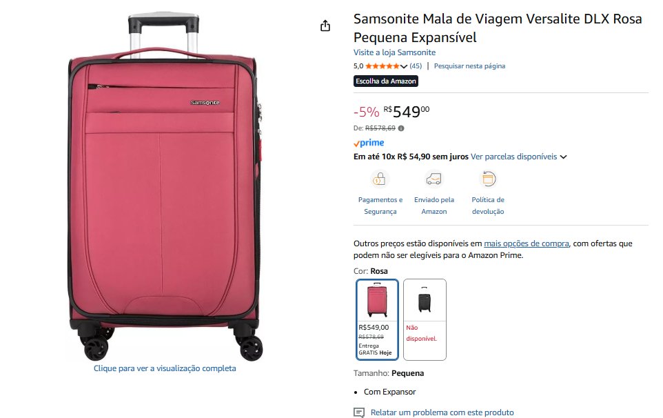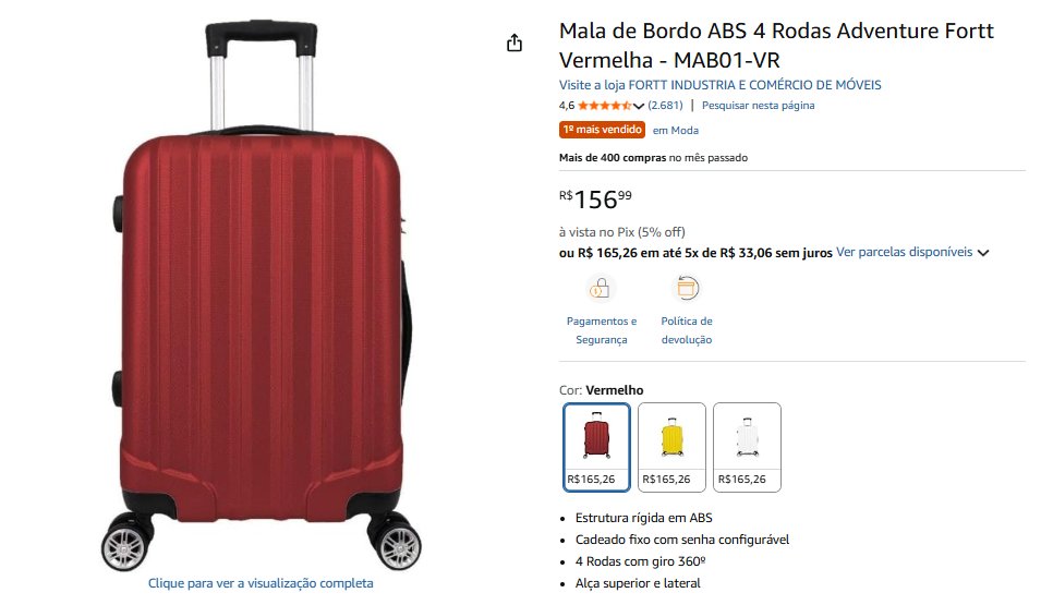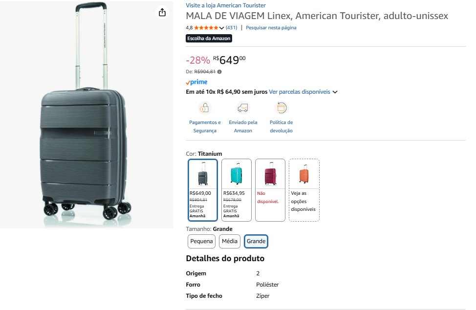 Viagem marcada e ainda não comprou a sua mala? A Amazon está com descontos imperdíveis de até 28% de desconto e ainda é possível parcelar em até 12x sem juros a depender do valor da compra. Confira as ofertas e aproveite!
