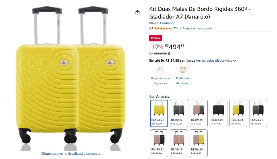 - Mala de Viagem Expansível | 5% de desconto – total R$ 549 – compre aqui