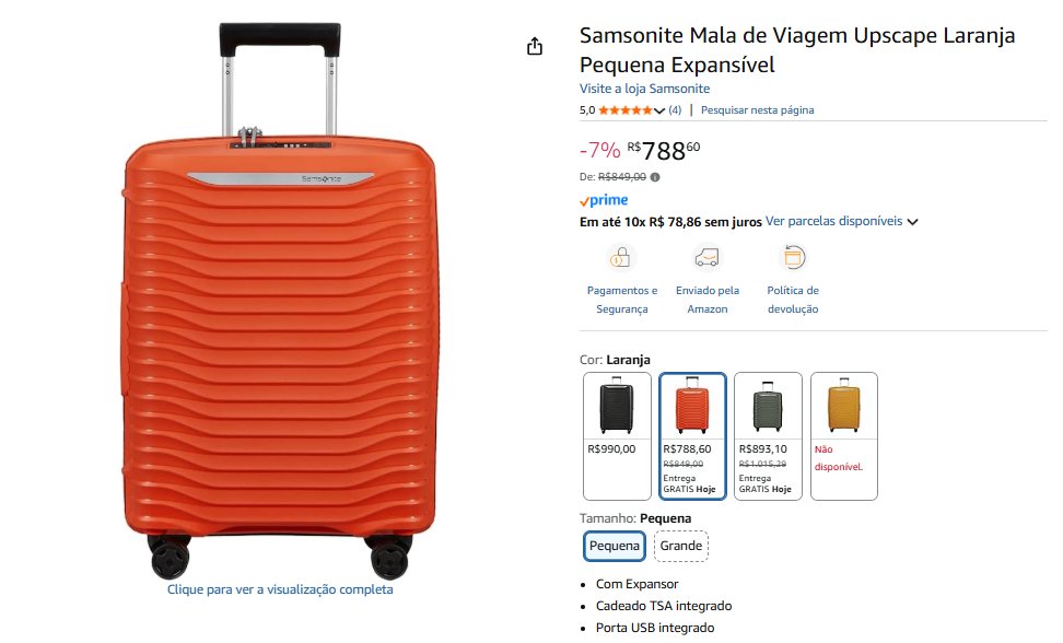 - Mala de Viagem Samsonite Upscape | 7% de desconto – total R$ 788,60 – compre aqui