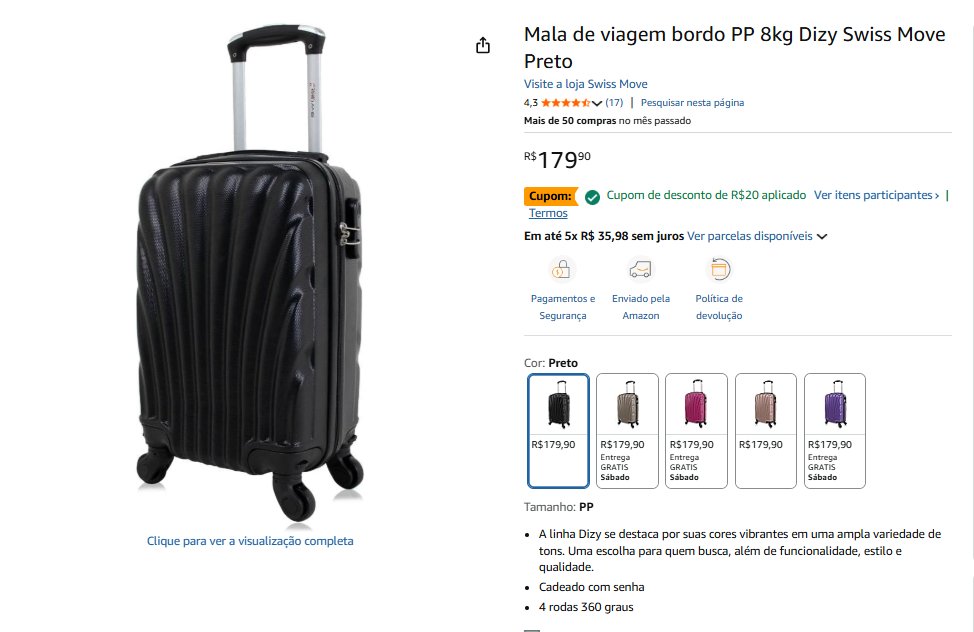 Para quem está precisando de alguma mala, essa pode ser uma ótima oportunidade de adquirir os itens com desconto! Lembre-se de comparar os preços com outras varejistas e também a possibilidade de ganhar cashback ou acumular pontos na sua compra.