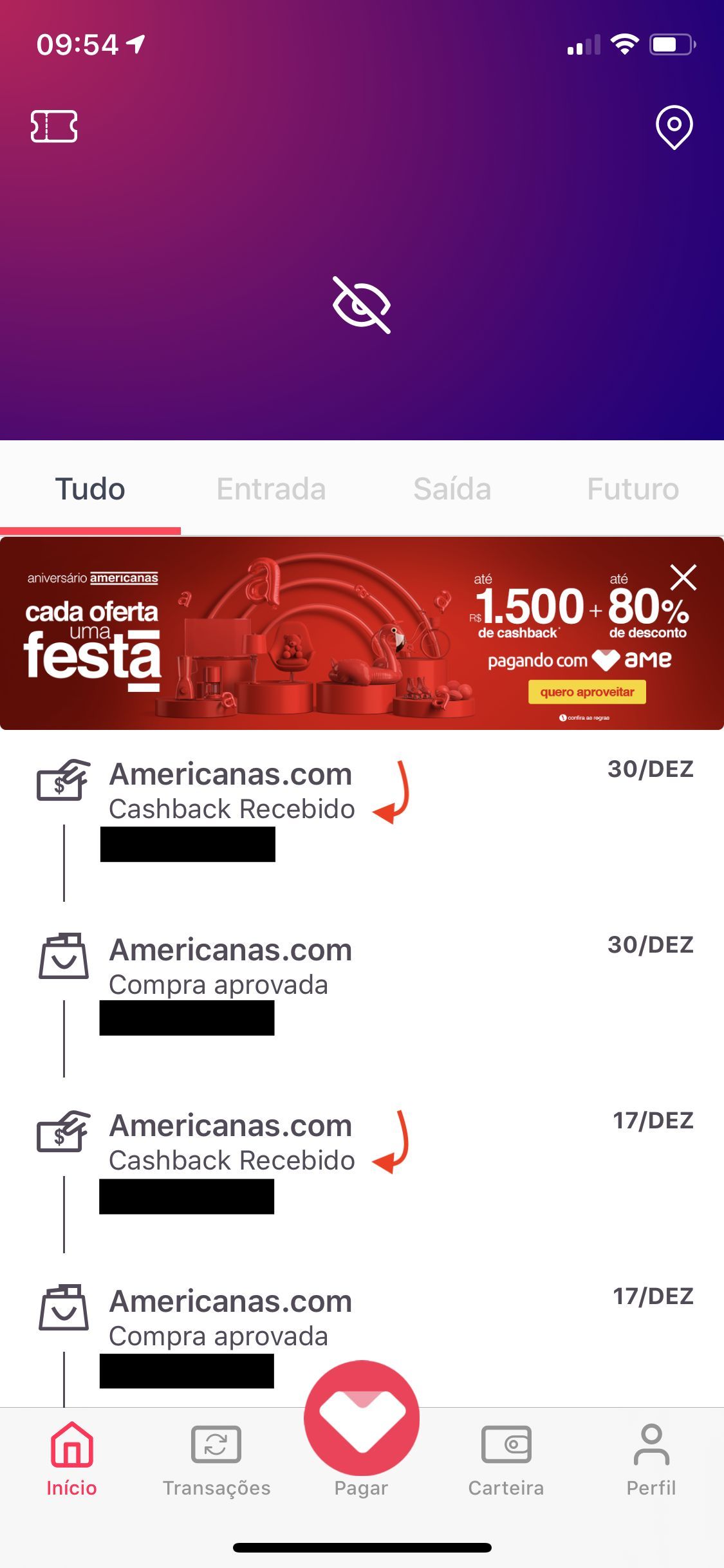 Recebendo o cashback na Ame Digital: