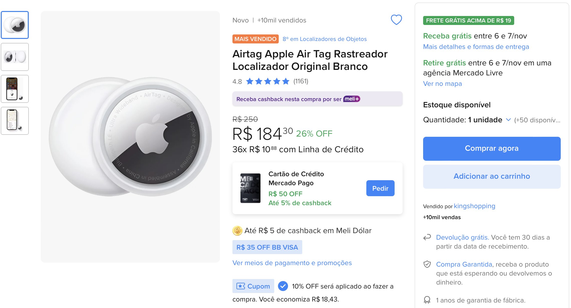 Veja abaixo um exemplo de item no Mercado Livre que permite a aplicação do cupom:
