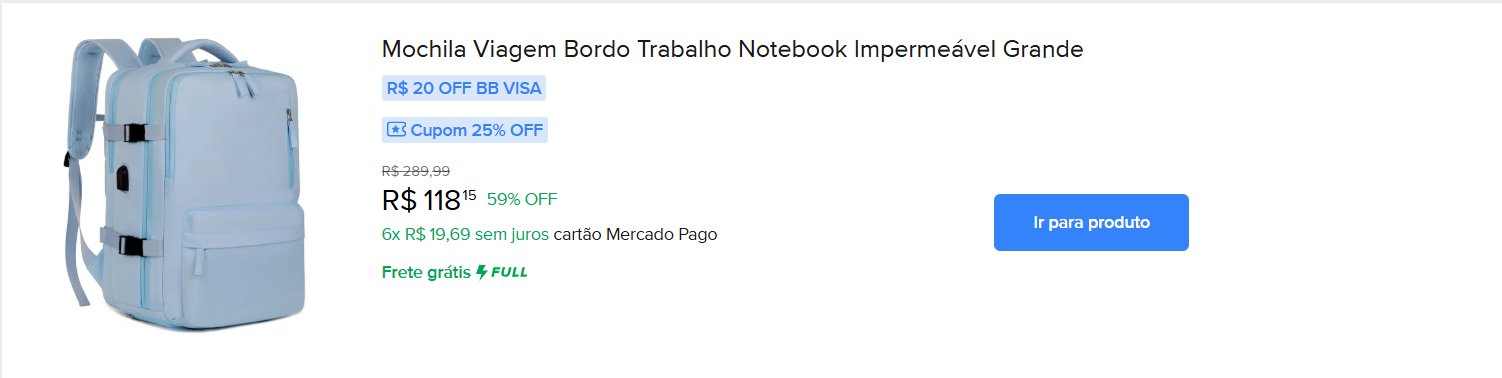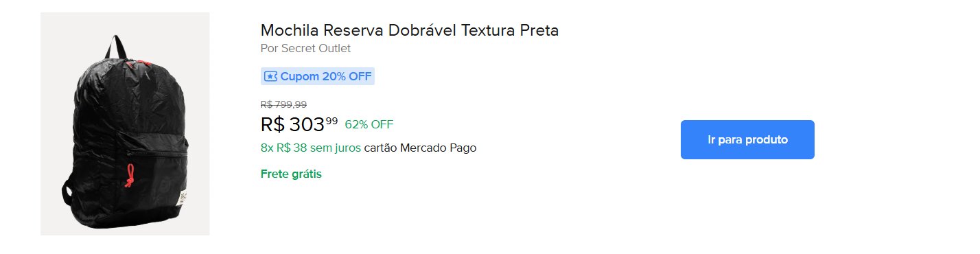 Pensa em aproveitar? Acesse o site do Mercado Livre para ver essa e outras promoções.