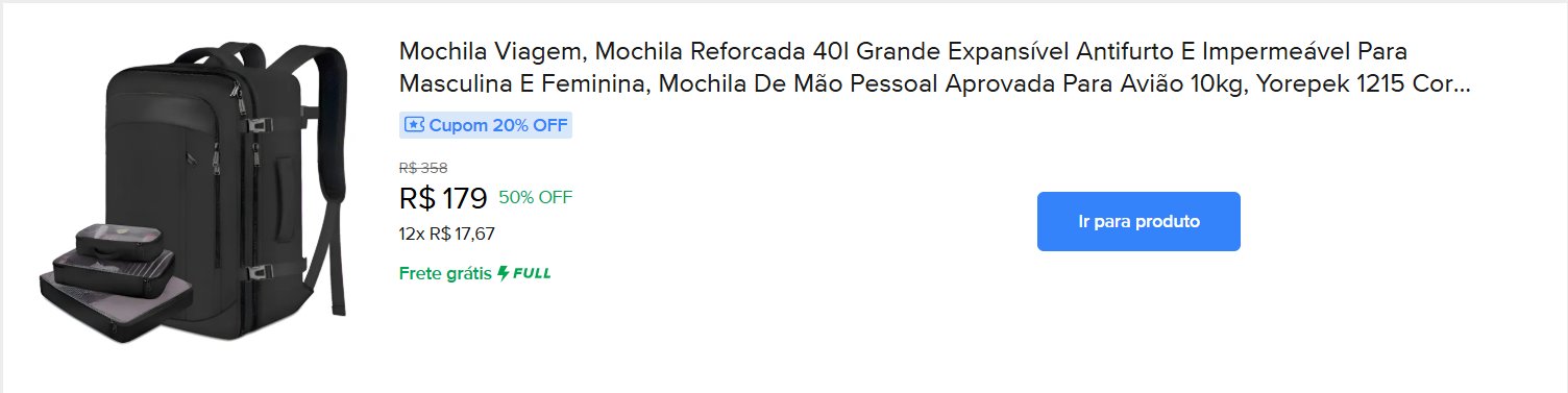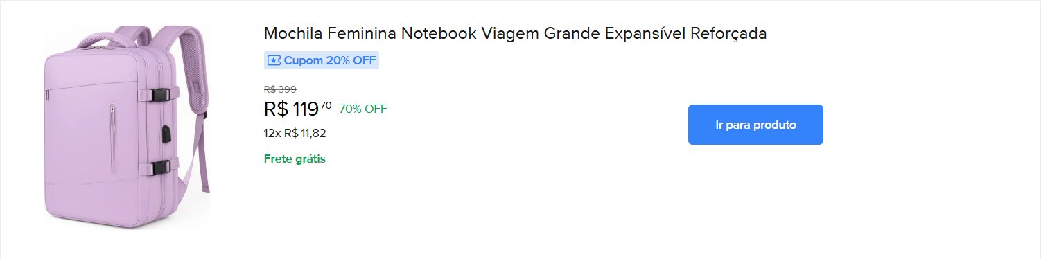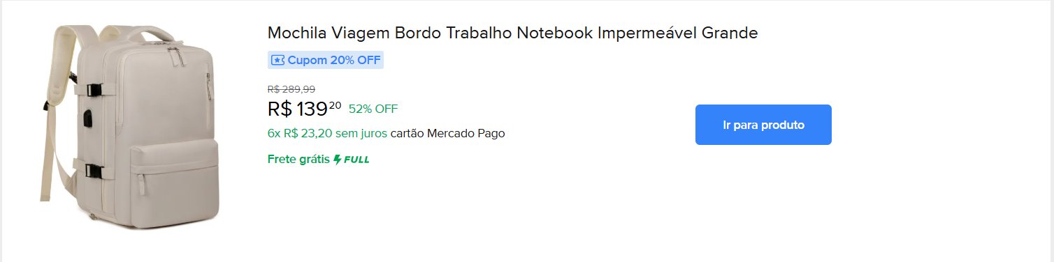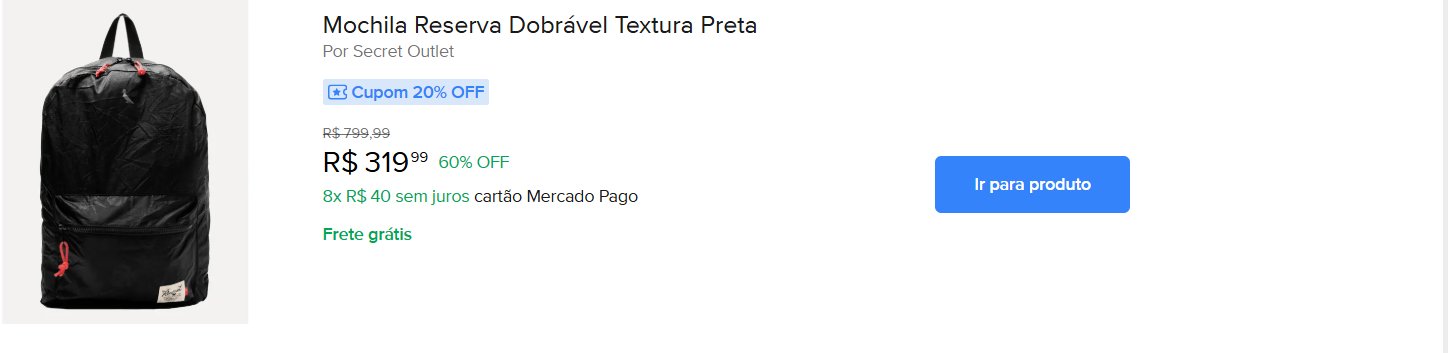 Pensa em aproveitar? Acesse o site do Mercado Livre para ver essa e outras promoções.