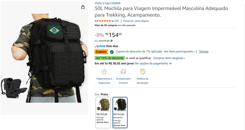 Produtos elegíveis a oferta: produtos vendidos no site da Amazon, exceto serviços de assinatura.