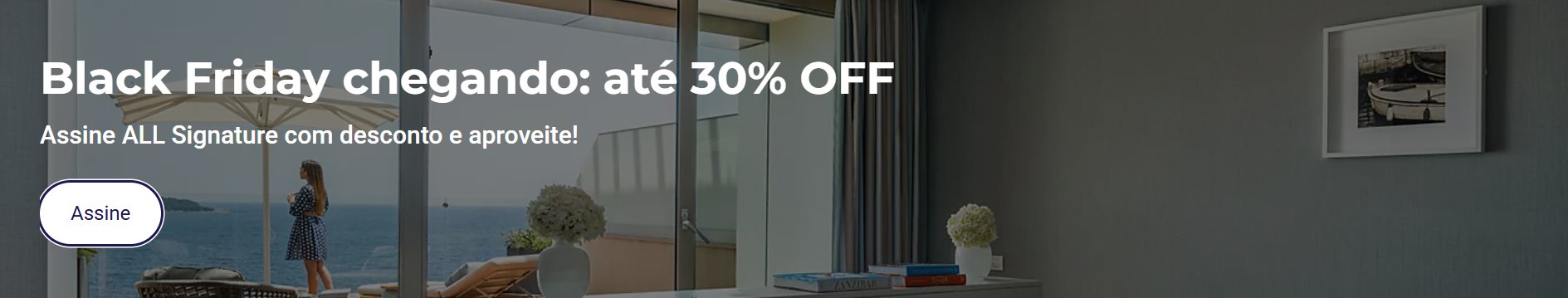 O desconto é válido apenas para assinaturas do plano mensal. Além disso, vale lembrar que já começou a Black Friday do ALL Accor e, devido às promoções de transferência bonificada que ocorrerão ao longo do mês, a oferta será ativada em outros momentos de novembro.
