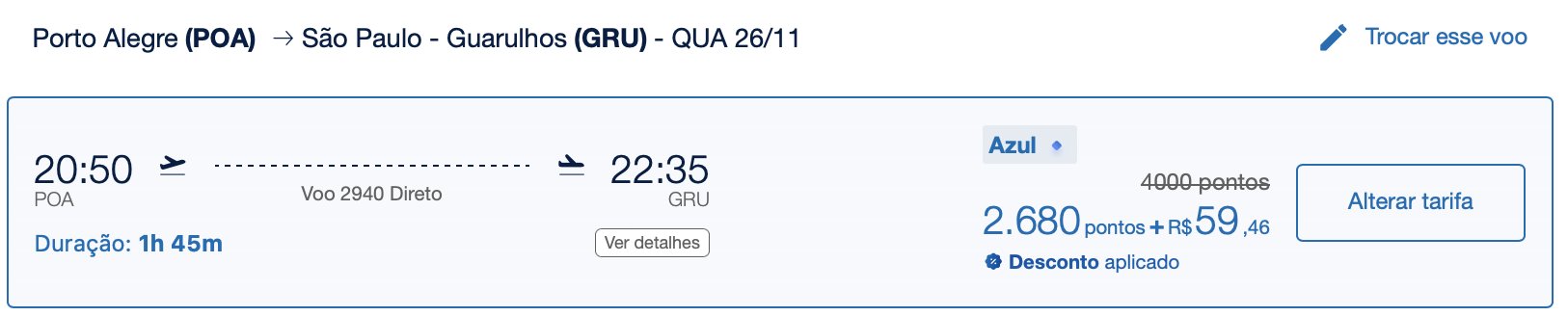 Caso você possua pontos Azul orgânicos, tenha em mente que, neste caso, o valor da passagem poderá sair ainda mais barato!