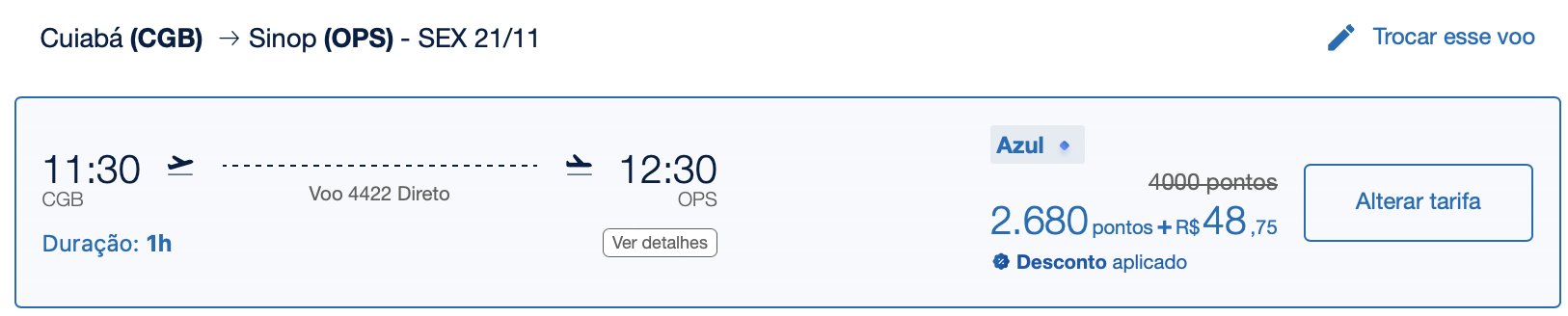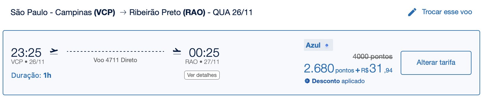 - 99.000 pontos restantes na modalidade pontos + dinheiro: R$ 2.276,99