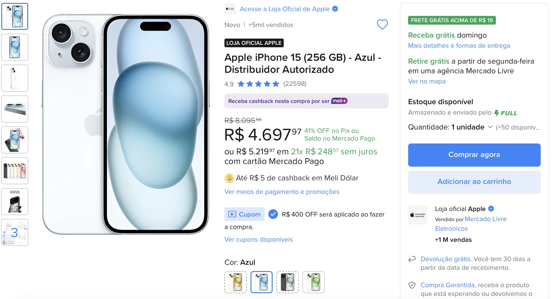 Veja abaixo um exemplo de item no Mercado Livre que permite a aplicação do cupom:
