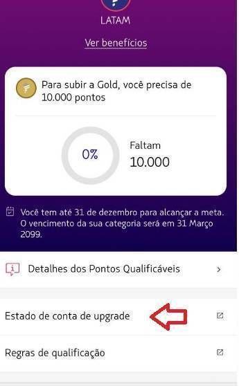 Pelo aplicativo acesse pelo botão “Estado de conta de Upgrade”: