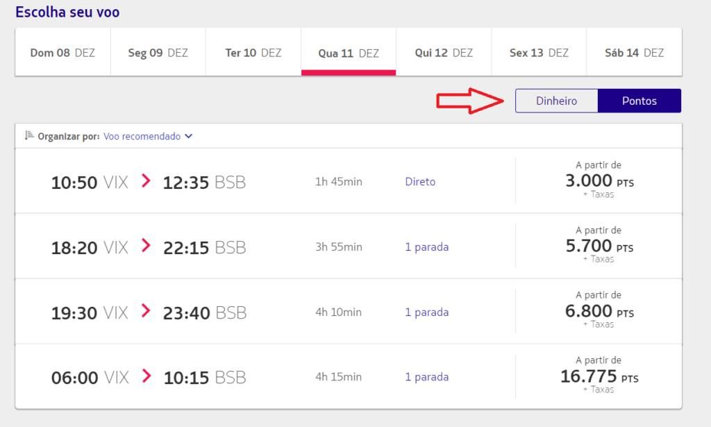 A opção de compra usando Pontos ou Dinheiro agora está disponível na tela de busca.