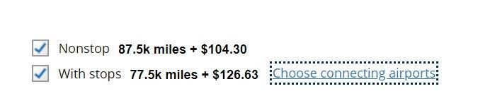 O site da United liberou mais uma funcionalidade nas buscas de passagens por pontos. Um filtro adicional para seleção do aeroporto de conexão. Vejam: