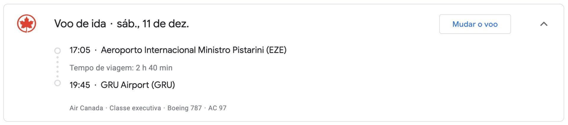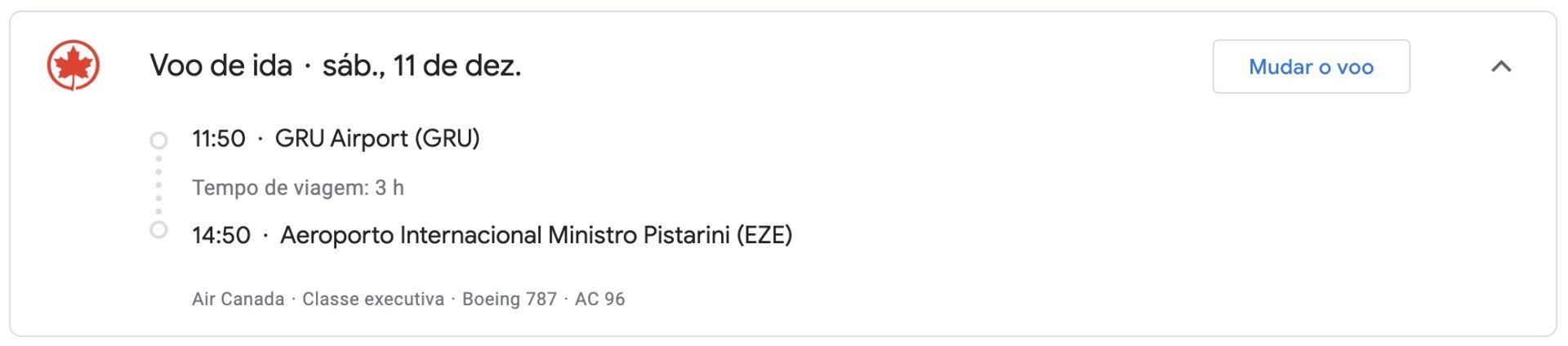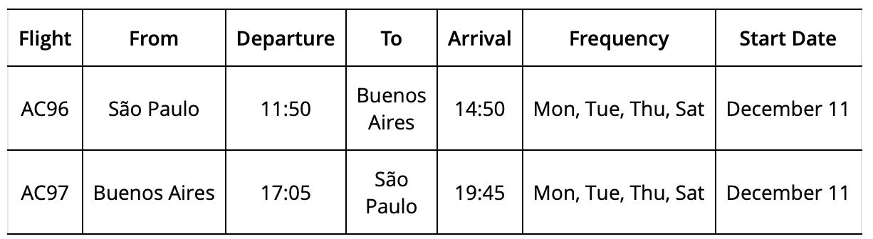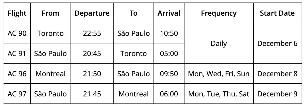 Veja abaixo a programação de voos da Air Canada para São Paulo e Buenos Aires: