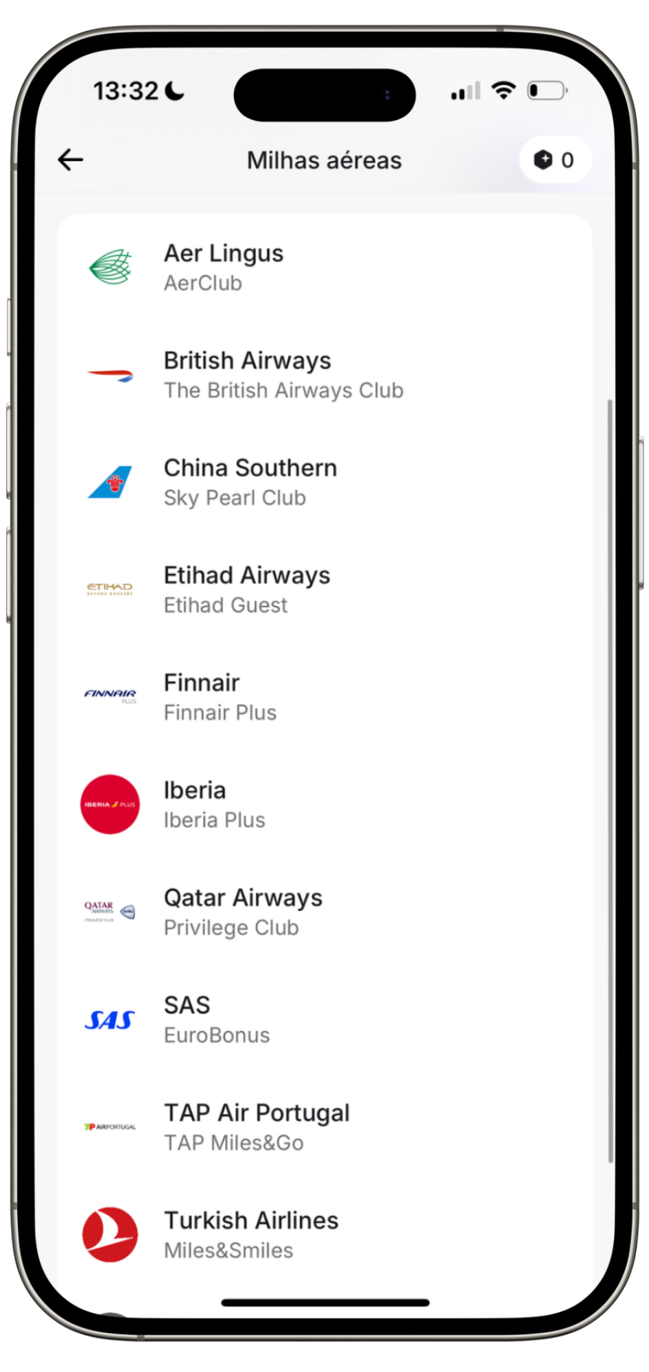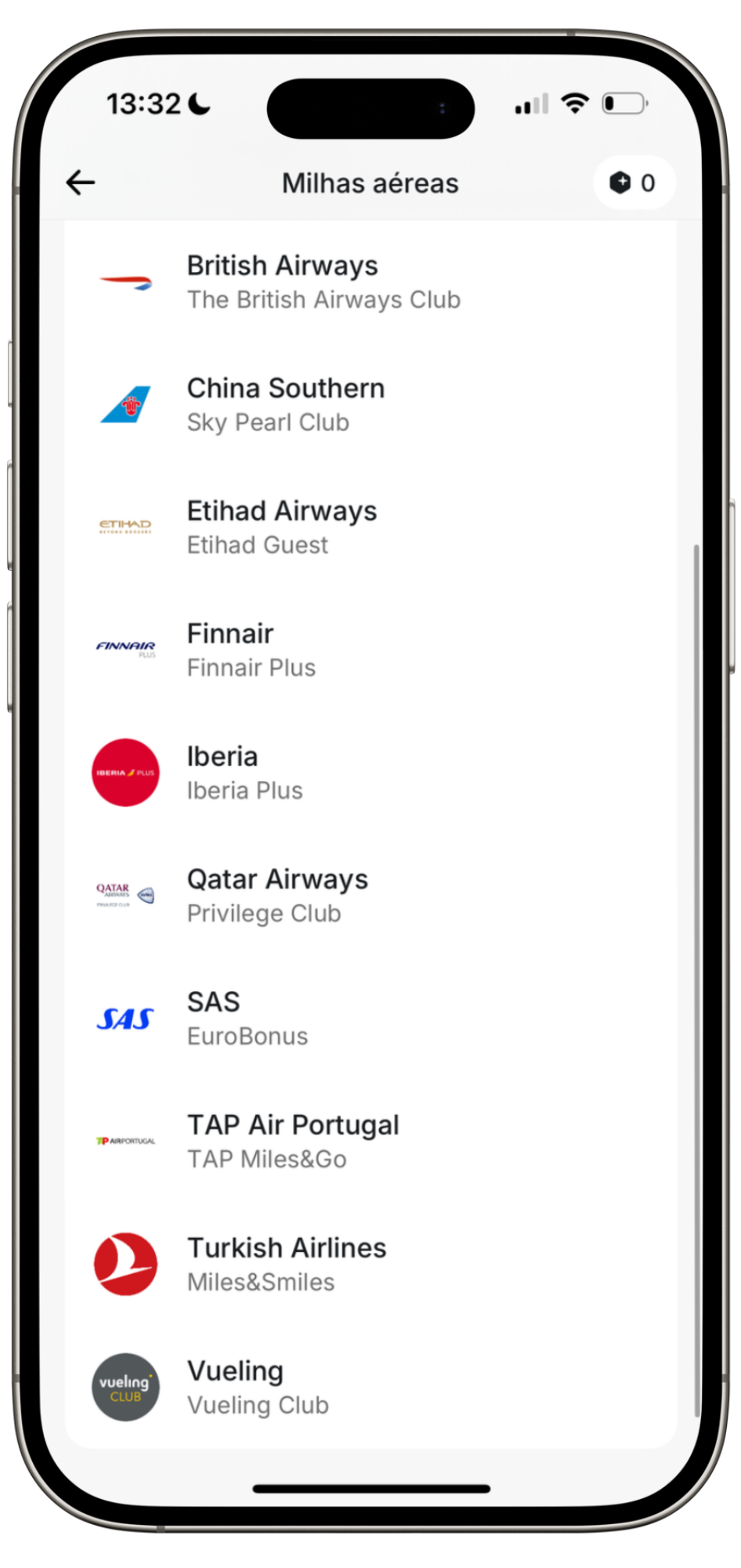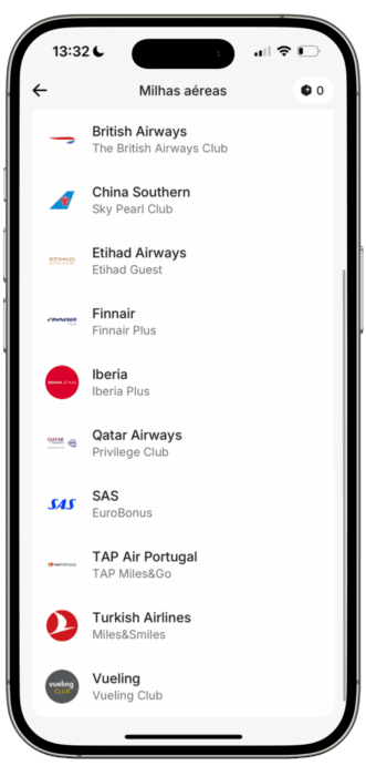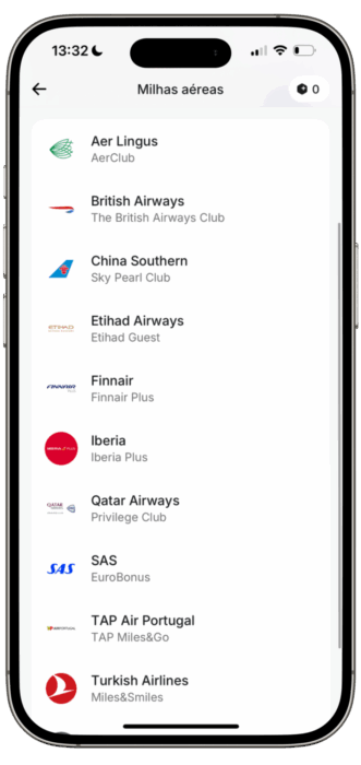 Entre os parceiros disponíveis para transferência de pontos estão: Iberia Club, The British Airways Club, Qatar Airways Privilege Club, TAP Miles&Go, Finnair Plus, Turkish Airlines Miles&Smiles, Aer Lingus AerClub, Vueling Club, SAS EuroBonus, China Southern e Etihad Guest. Para transferir, basta acessar a aba “RevPoints” na página inicial e selecionar um dos parceiros disponíveis.