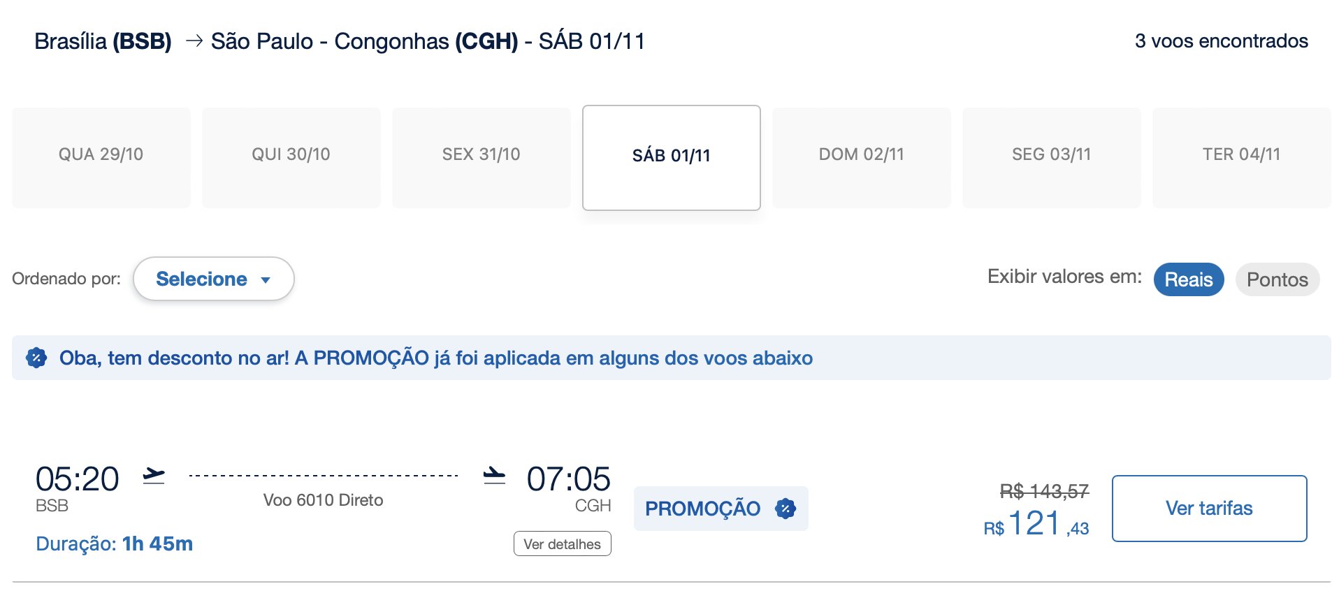 Brasília (BSB) x São Paulo (CGH) – 1 de novembro de 2025