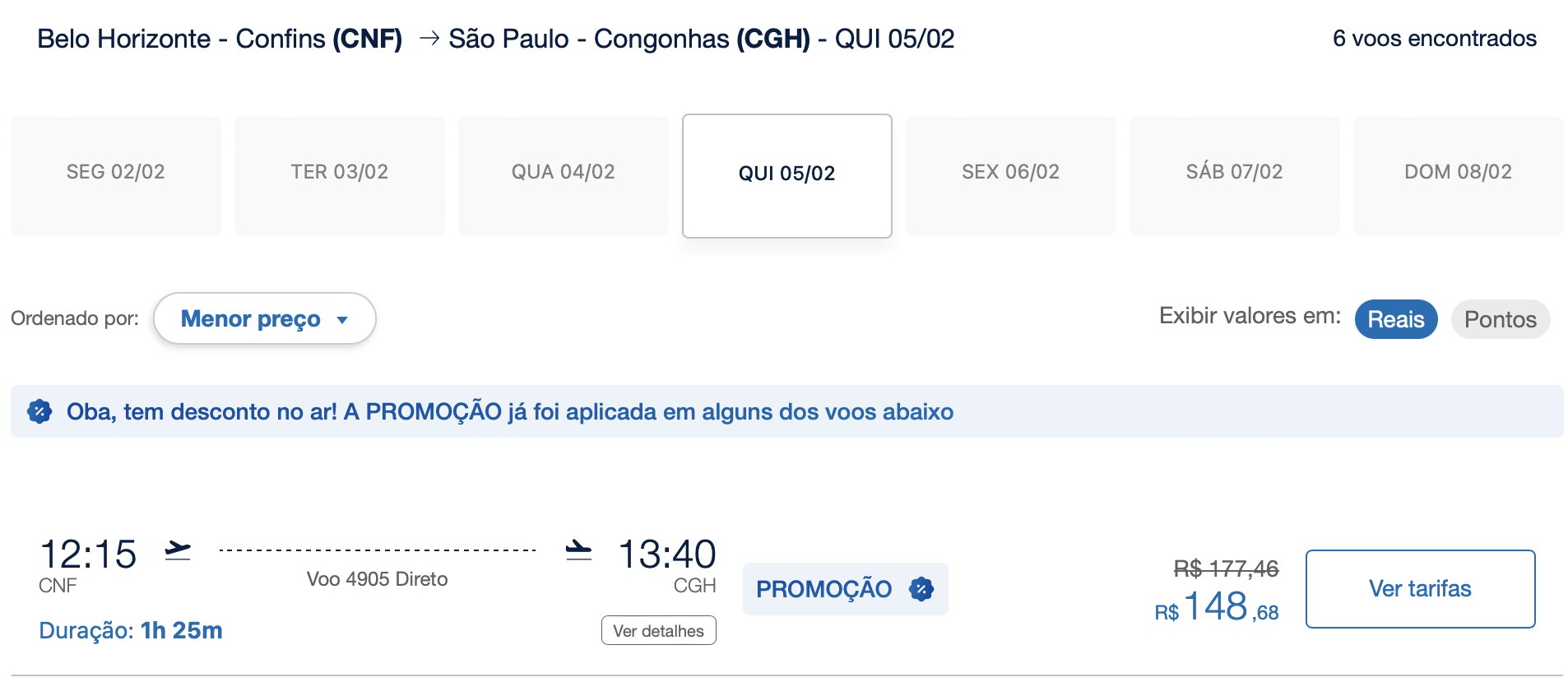 Belo Horizonte (CNF) x São Paulo (CGH) – 5 de fevereiro de 2026