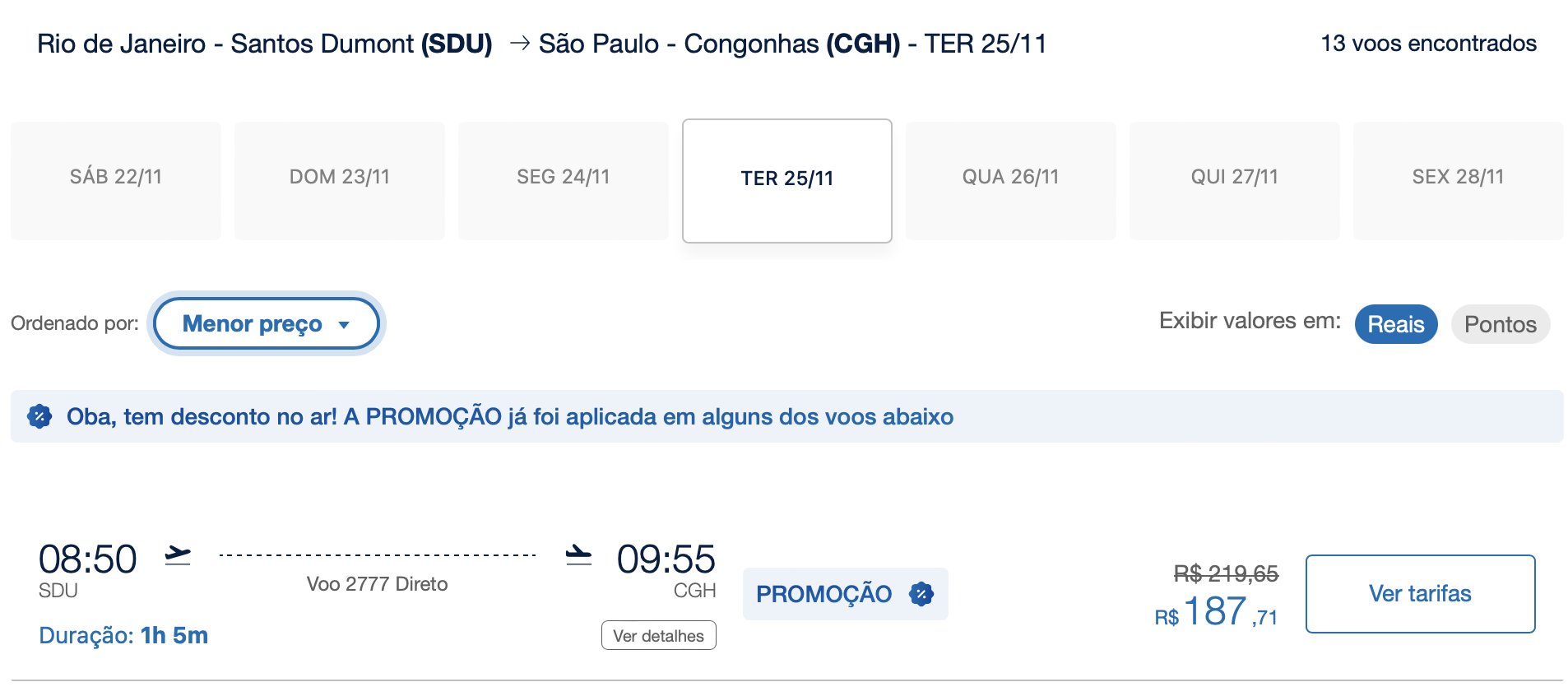 Em nossas buscas, encontramos alguns exemplos de passagens em promoção: