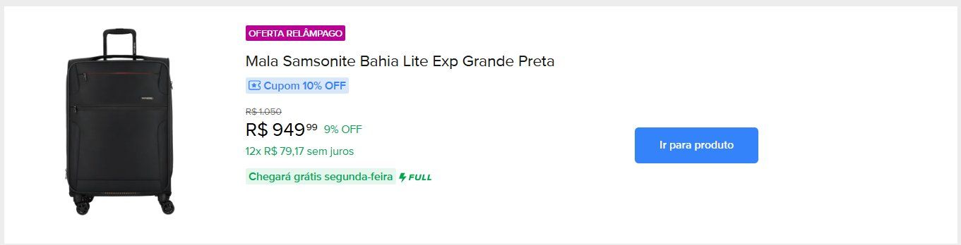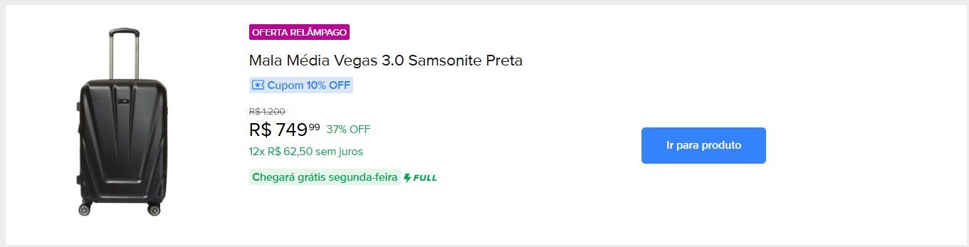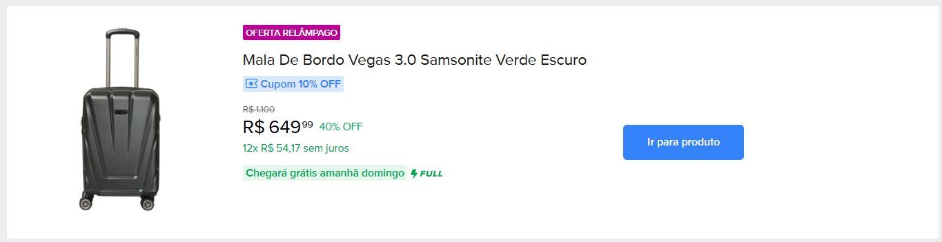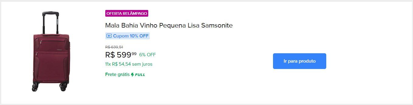 Essa pode ser uma boa oportunidade para fazer a compra de alguma mala Samsonite que você gostaria por um custo reduzido e ainda ganhar + até R$ 100 de desconto. Atente-se que os descontos são válidos por tempo indeterminado e pode acabar a qualquer momento.