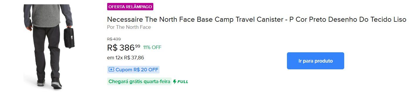 Mais itens a preços promocionais para a sua próxima viagem! O Mercado Livre está com uma seleção de produtos da marca The North Face com até 35% off + cupom de até R$ 20 de desconto! A oferta é relâmpago, então corra para fazer a sua compra porque os produtos podem se esgotar a qualquer momento. Confira!
