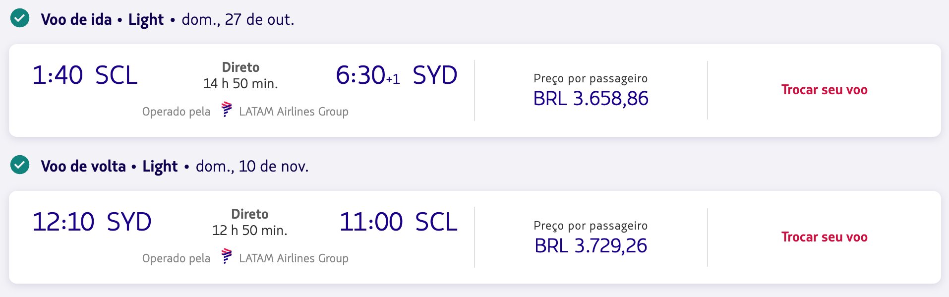 Santiago (SCL) x Sydney (SYD) – a partir de R$ 3.658,86, o trecho: