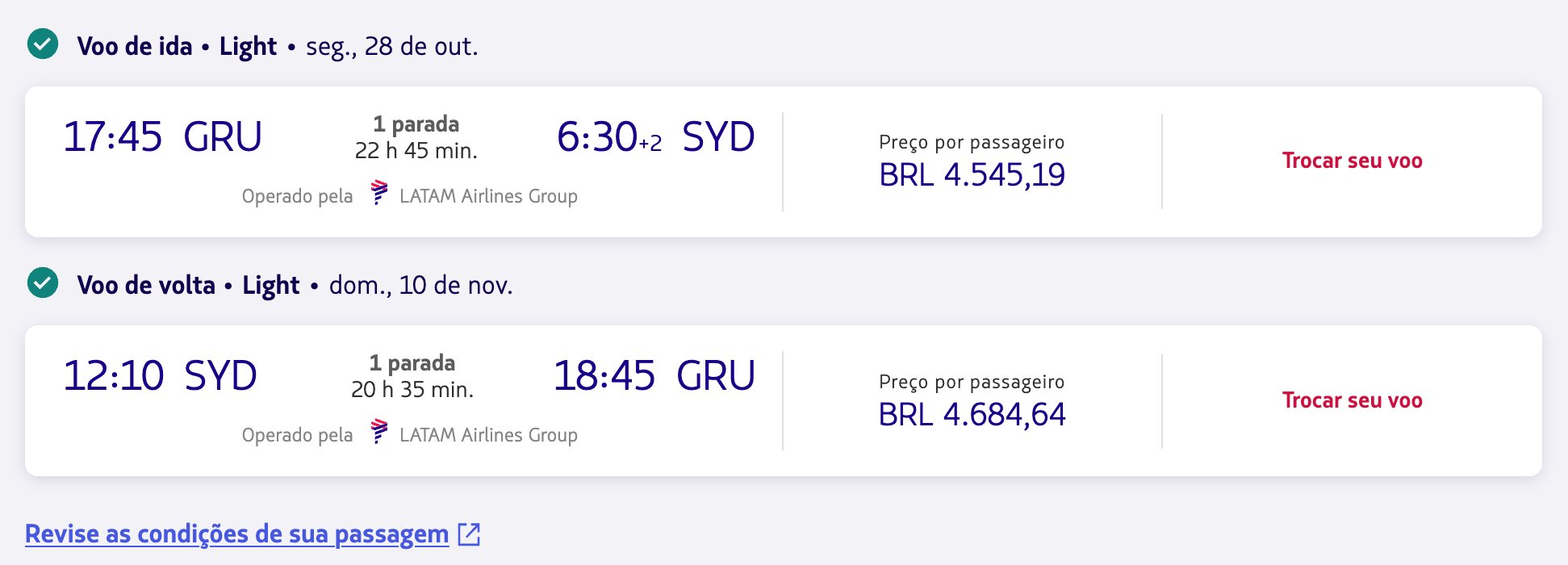 São Paulo (GRU) x Sydney (SYD) – a partir de R$ 4.545,19, o trecho:
