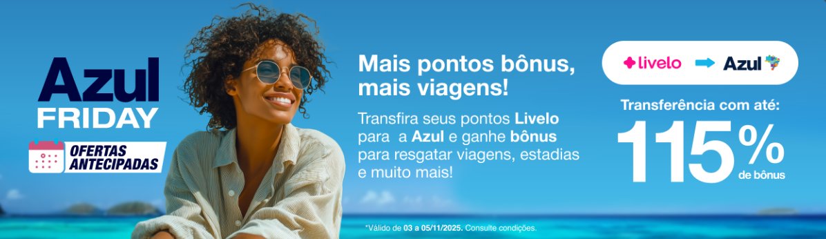 - + 5% de bônus – assinantes Clube Azul há mais de 6 meses;