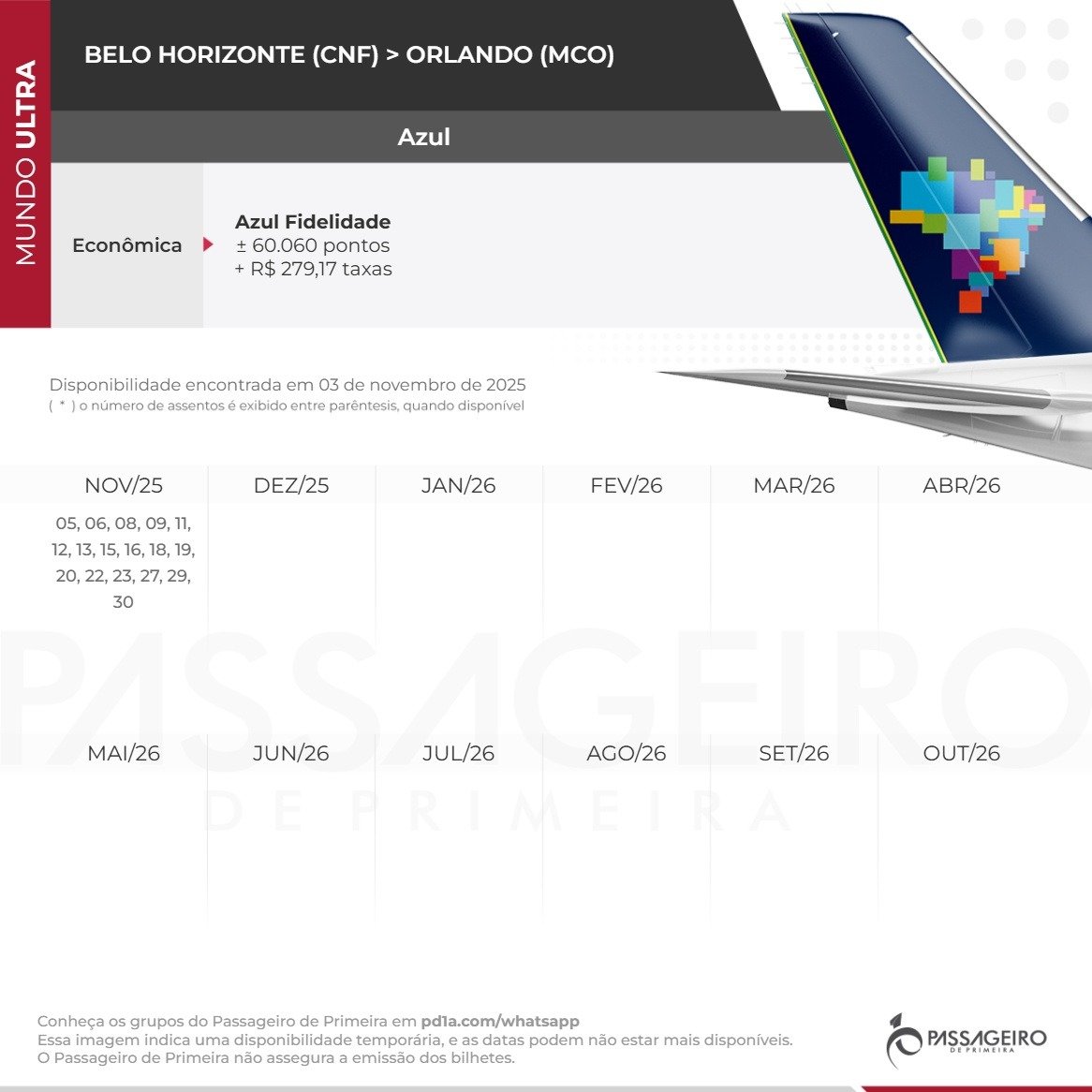- Rota: Belo Horizonte (CNF) > Orlando (MCO)