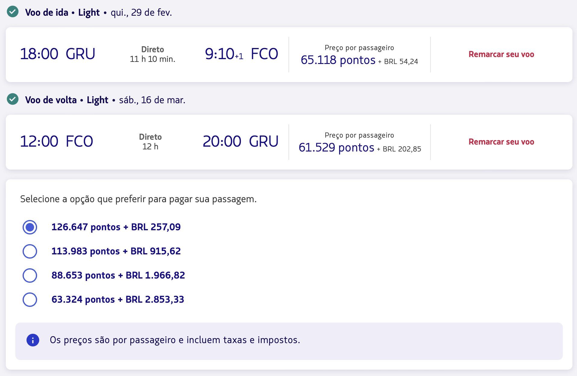São Paulo (GRU) x Roma (FCO) – 29 de fevereiro a 16 de março