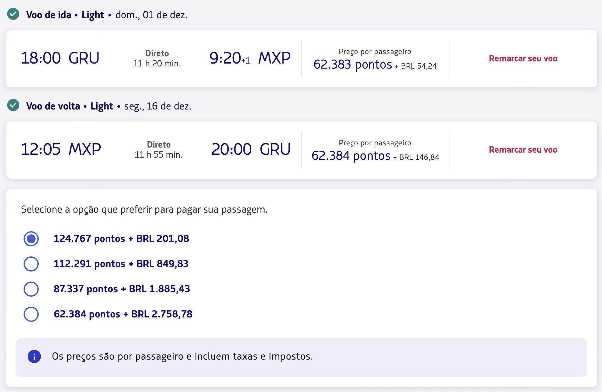 São Paulo (GRU) x Milão (MXP) – 1 de dezembro a 16 de dezembro