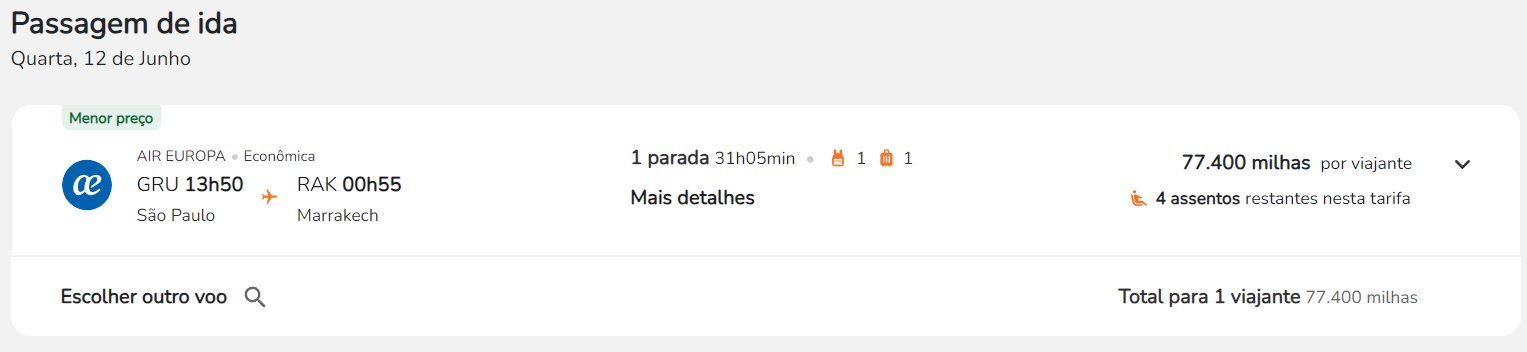 São Paulo (GRU) x Marrakech (RAK) – 12 de junho de 2024 –  clique aqui