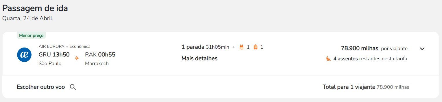 São Paulo (GRU) x Marrakech (RAK) – 24 de abril de 2024 –  clique aqui