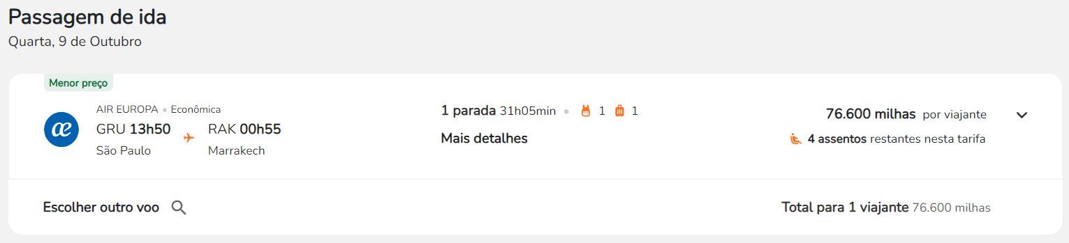 São Paulo (GRU) x Marrakech (RAK) – 9 de outubro de 2024 –  clique aqui