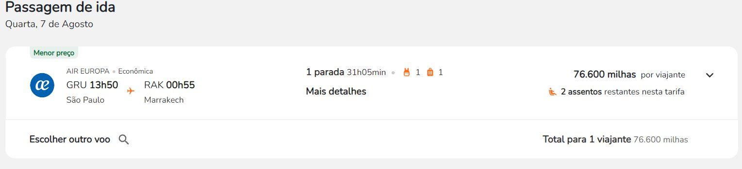 São Paulo (GRU) x Marrakech (RAK) – 7 de agosto de 2024 –  clique aqui