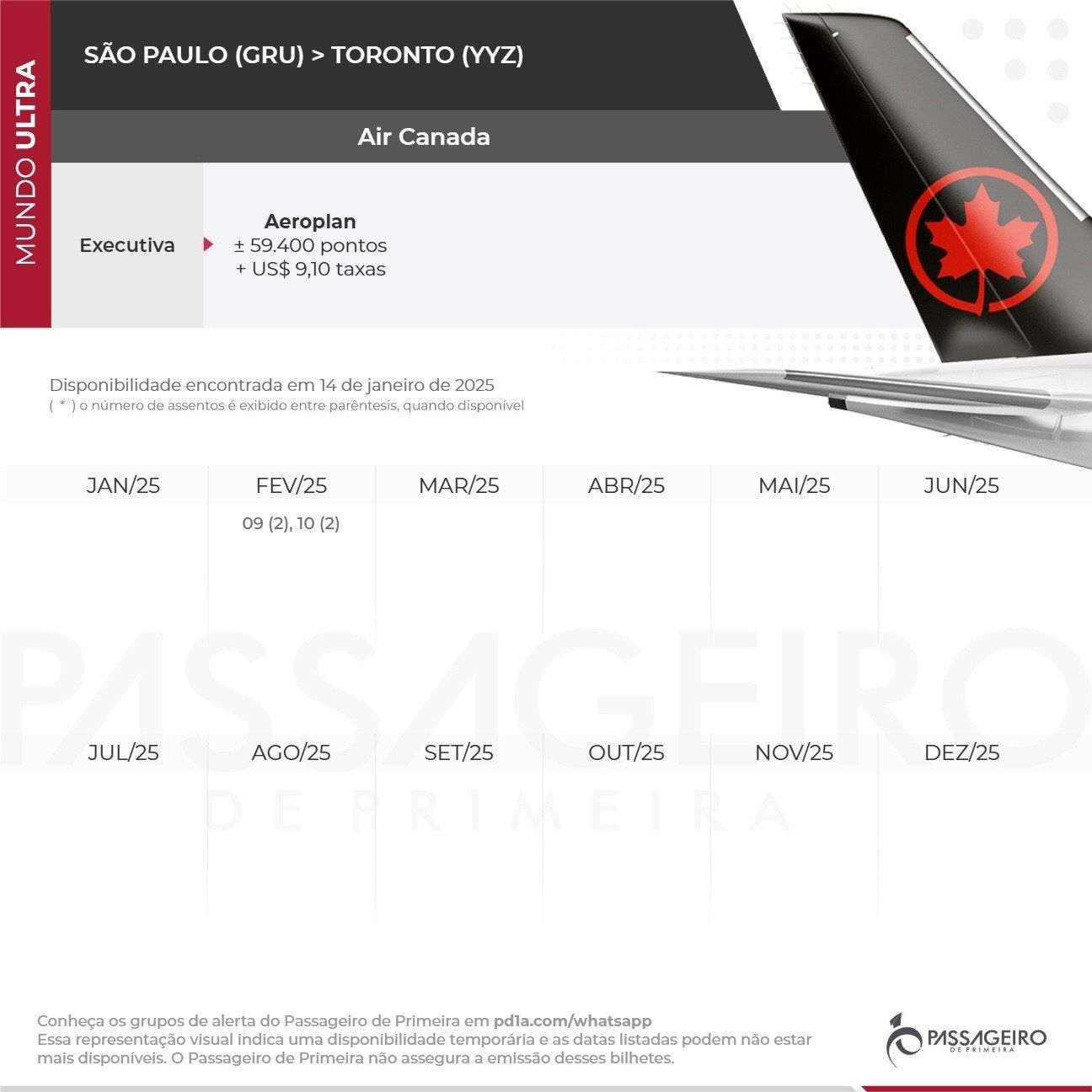 • ⁠Rota: São Paulo (GRU) x Toronto (YYZ)