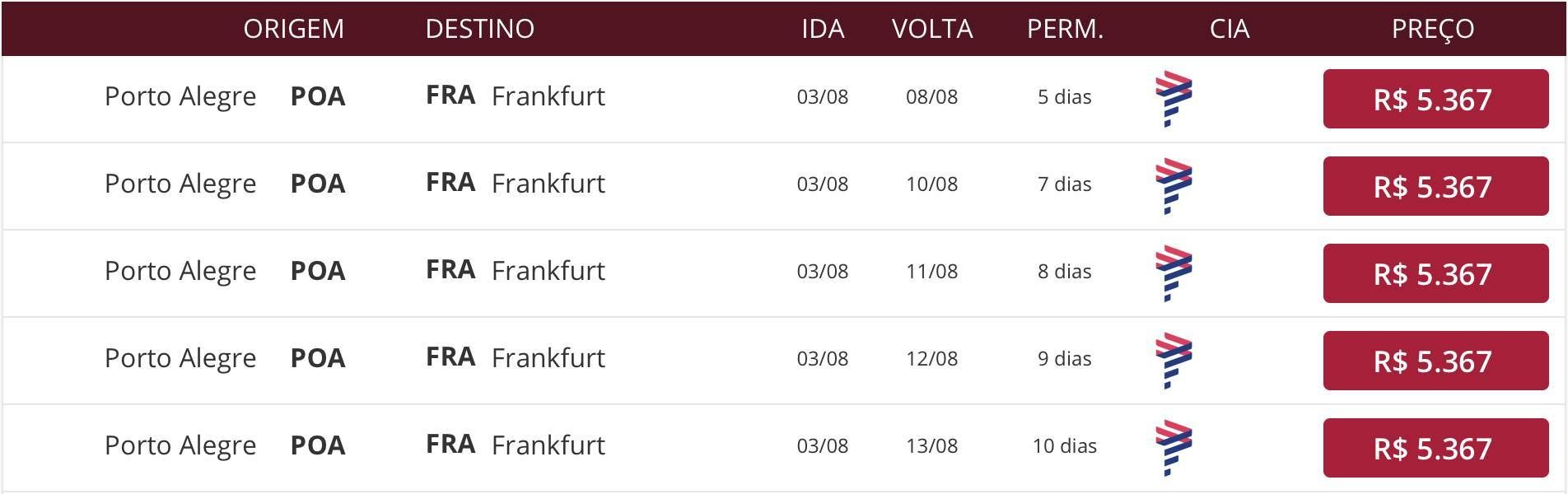 A Latam está com boas tarifas em classe executiva para a Alemanha! Encontramos passagens para Frankfurt a partir de R$5.003 ida e volta em executiva saindo de diversas cidades no Brasil. Há disponibilidade para o mês de Agosto – ainda alta temporada/verão europeu.