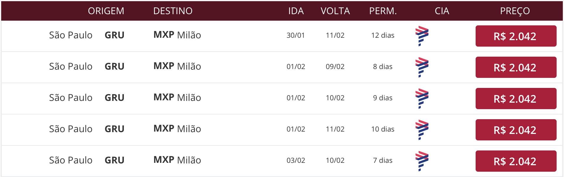 A LATAM tem ótimas ofertas em classe econômica para a Itália. Encontramos passagens para Milão a partir de R$1.898 ida e volta saindo de várias cidades no Brasil.