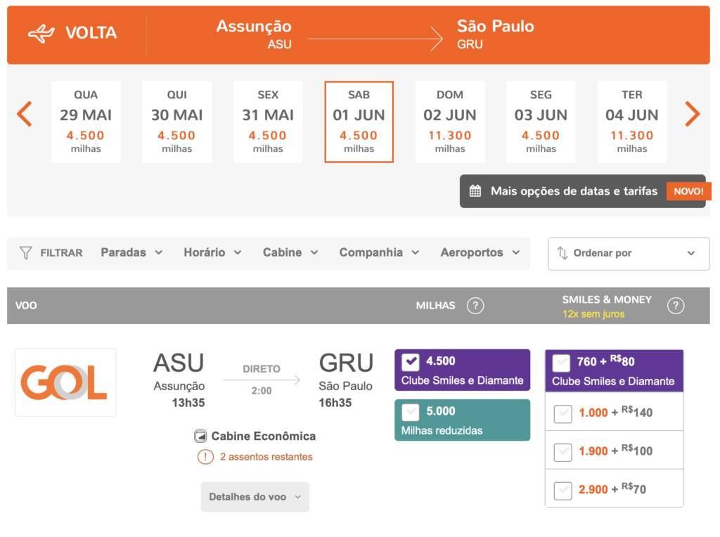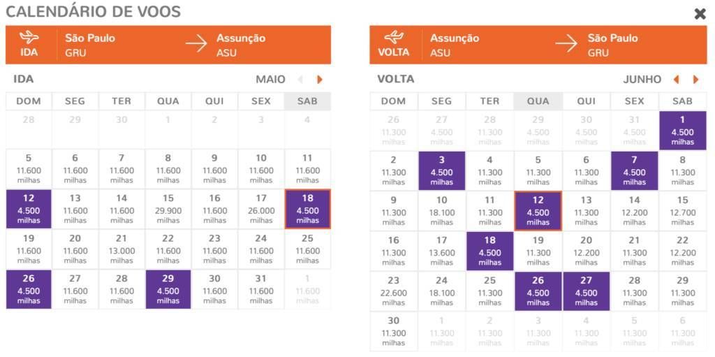 O programa está cobrando 4.500 milhas por trecho na rota São Paulo (GRU) e Assunção (ASU).