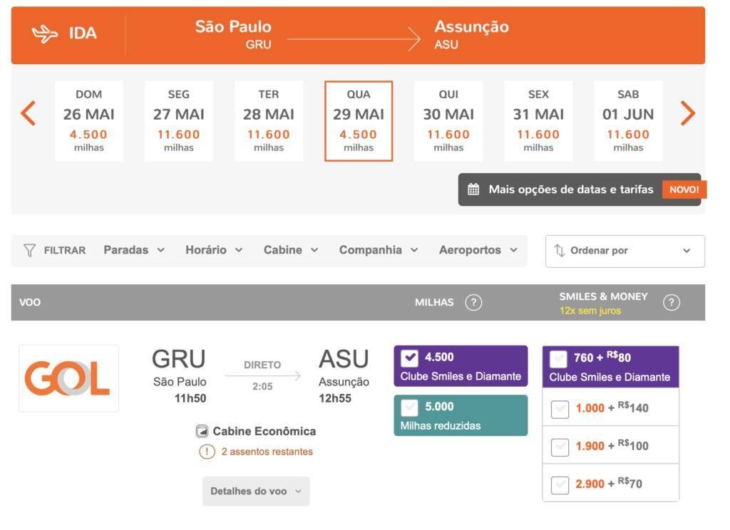 Passagens para o Paraguai por 4.500 milhas Smiles (o trecho)