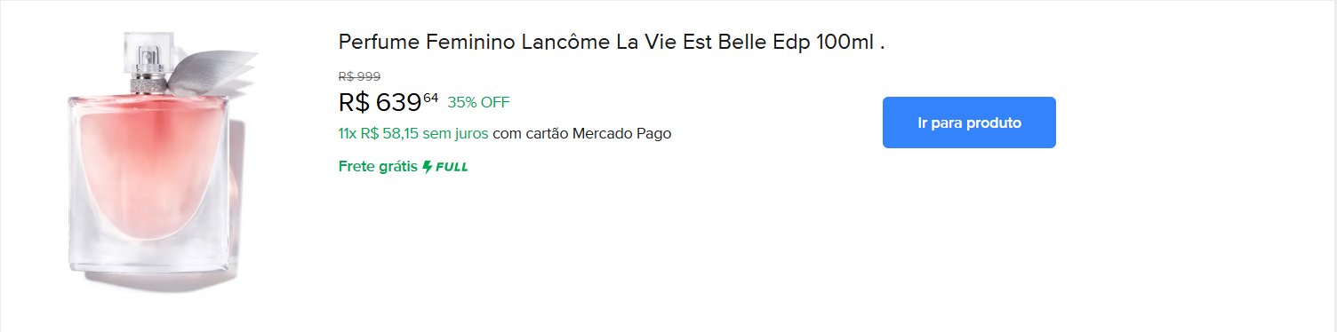 Em busca do perfume perfeito? O Mercado Livre está com uma seleção com até 48% de desconto. Os descontos são válidos por tempo indeterminado, então acelere para comprar o seu porque os produtos podem esgotar a qualquer momento. Confira!